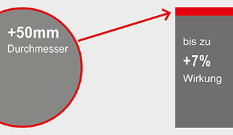 - Bis zu 7% mehr Wärmetauscherfläche durch bis zu 50mm grösseren Durchmesser der Speichermasse